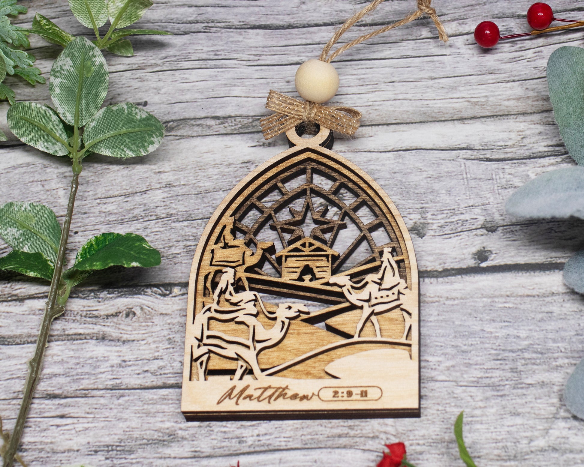 3 Wise Men and a Manger Arched Christmas Story Ornament