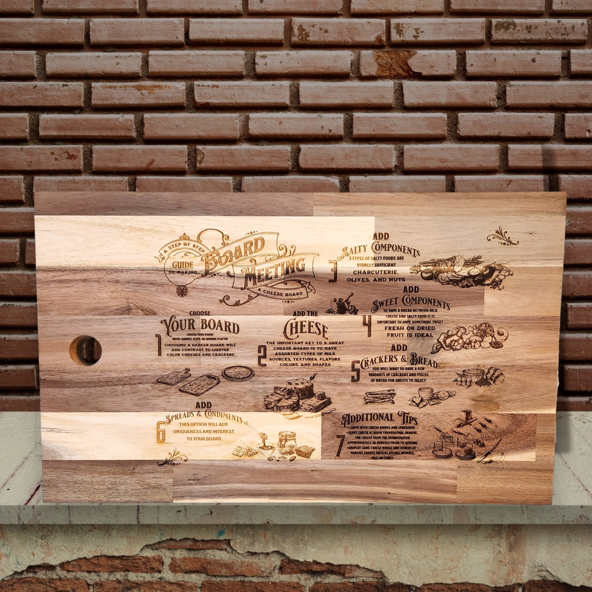 This Board Meeting Cutting/Serving Board is designed to make meal prep and entertaining easy. The solid acacia wood construction is durable and sustainable, perfect for cutting, serving, and displaying your dishes. Add a touch of class to your kitchen with this quality cutting board.