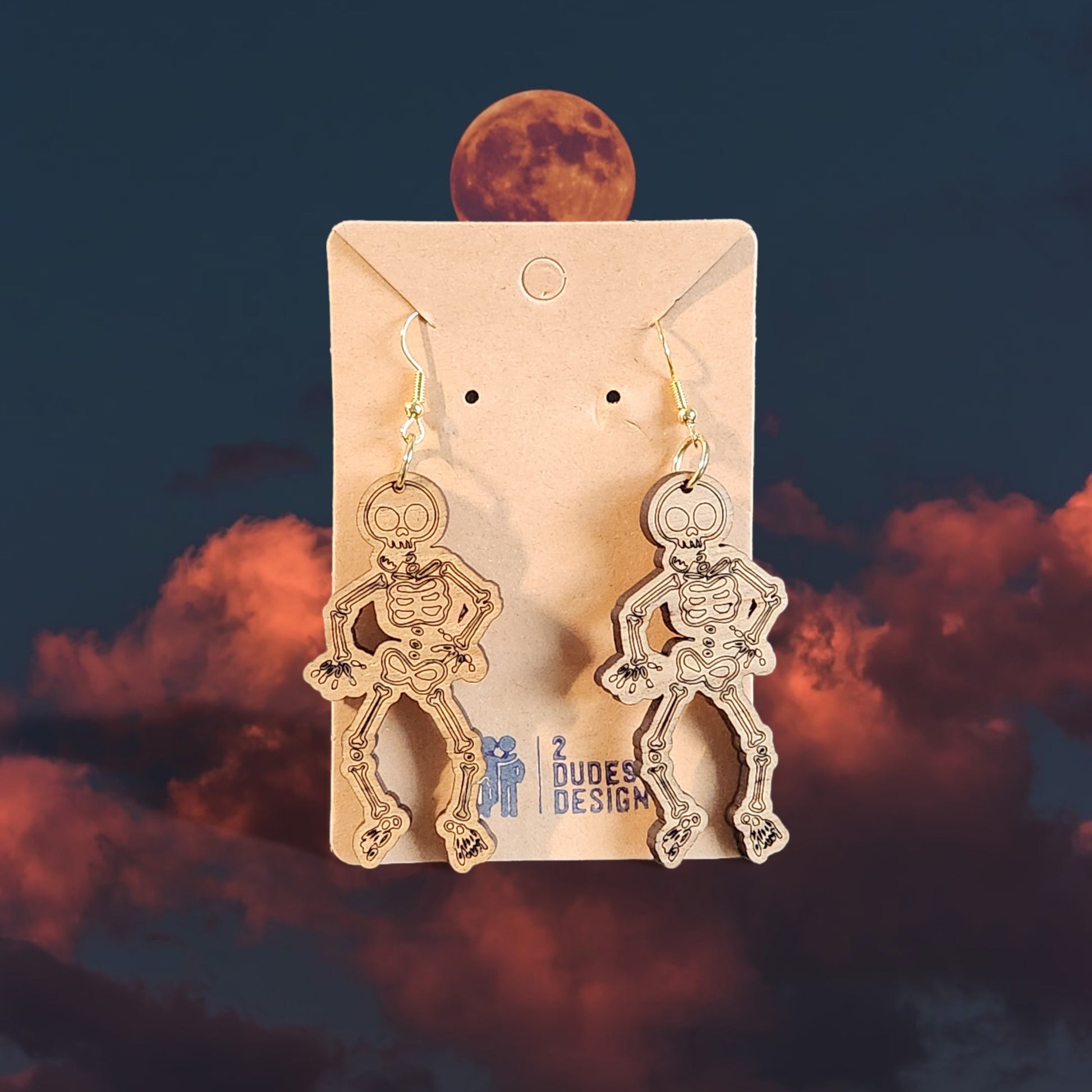 Skeleton Halloween Dangle Earrings, Made of Birch Wood