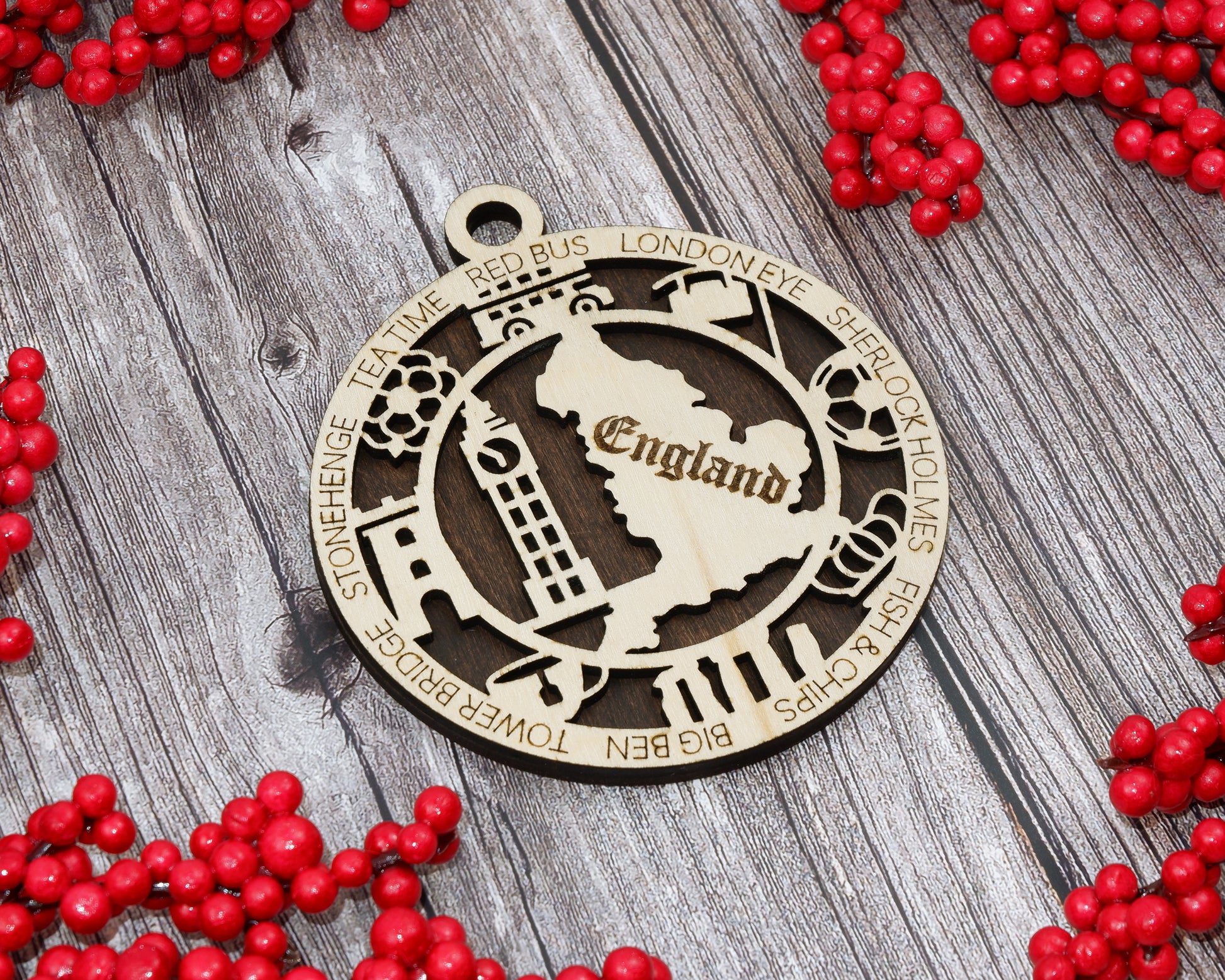 Bring a touch of British charm to your holiday display with this England Ornament! From royal palaces to cozy countryside pubs, this playful keepsake celebrates everything quintessentially English. Perfect for tea lovers, history buffs, and anyone enchanted by England's timeless elegance and quirky character. Hang it on your tree and let it whisk you away to foggy London streets, rolling green hills, and afternoon tea traditions. A delightful addition for those who adore the magic of England.
