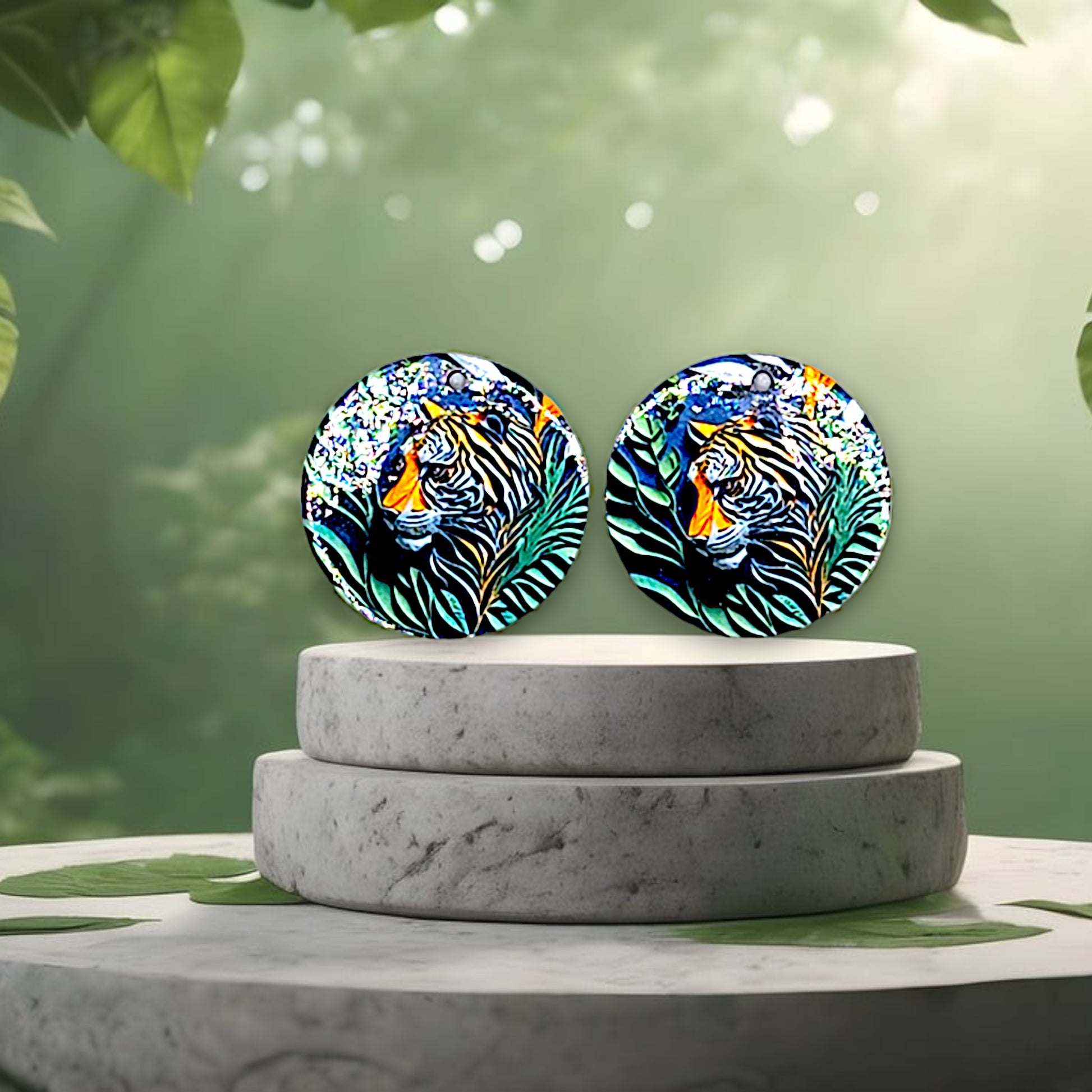 Elevate your style with our Graphic Round Predator Dangle Earrings. These unique earrings feature a fierce predator design that will add a touch of edginess to any outfit. Made with high-quality materials, these earrings are the perfect statement piece for any fashion-forward individual. Feel confident and bold with each wear.