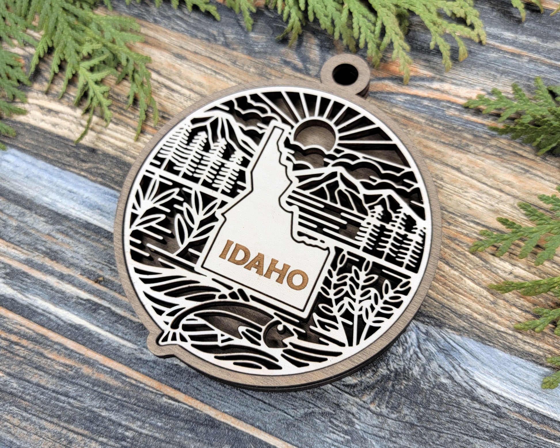 Celebrate Idaho's rich heritage with this beautifully crafted Idaho State Heritage Ornament. Perfect for adding a meaningful touch to your holiday decor or as a thoughtful gift, it honors the state’s unique history and culture. Its detailed design makes it a cherished keepsake for residents and admirers alike.