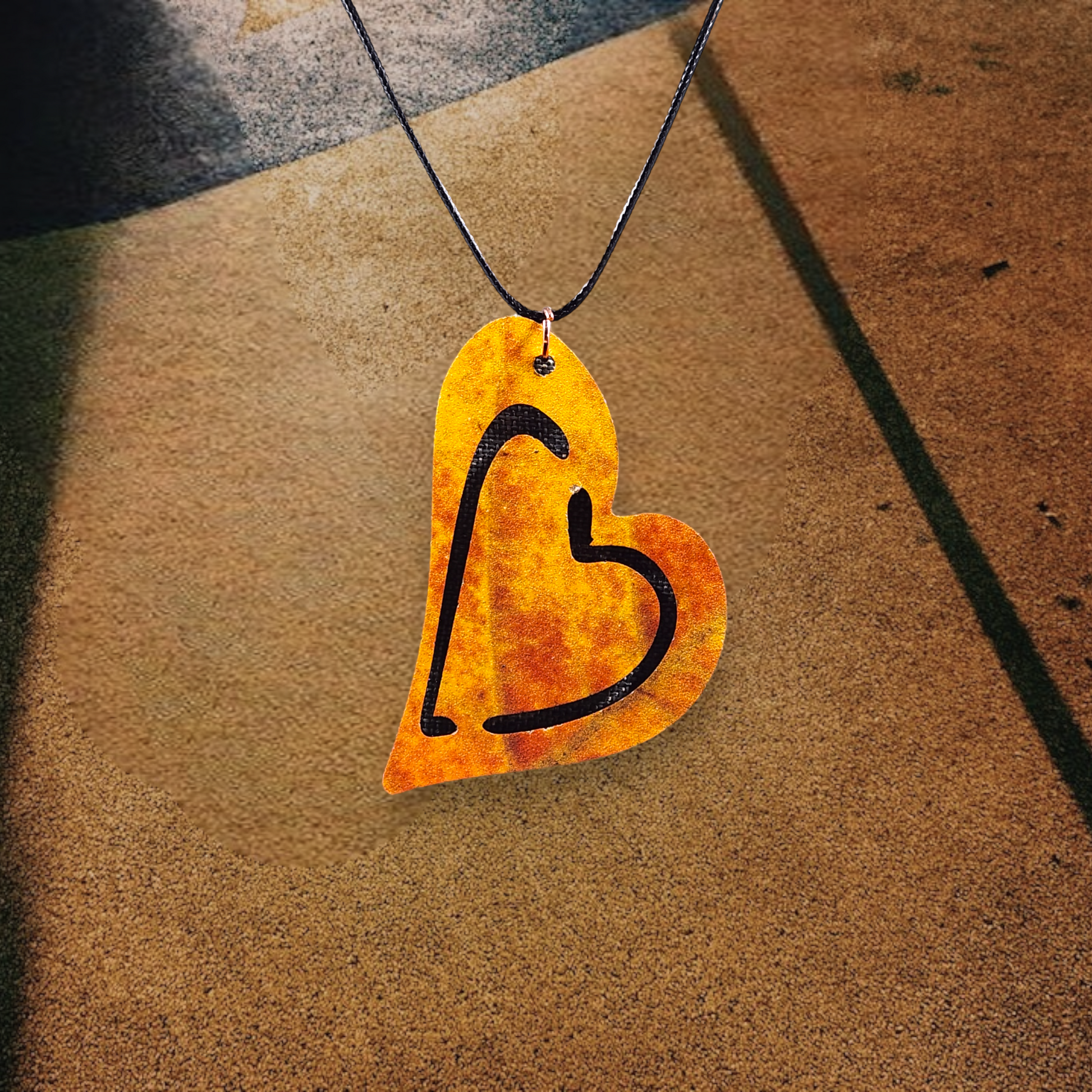 Heart Patterned Necklace, Black Rope, Silver Clasp