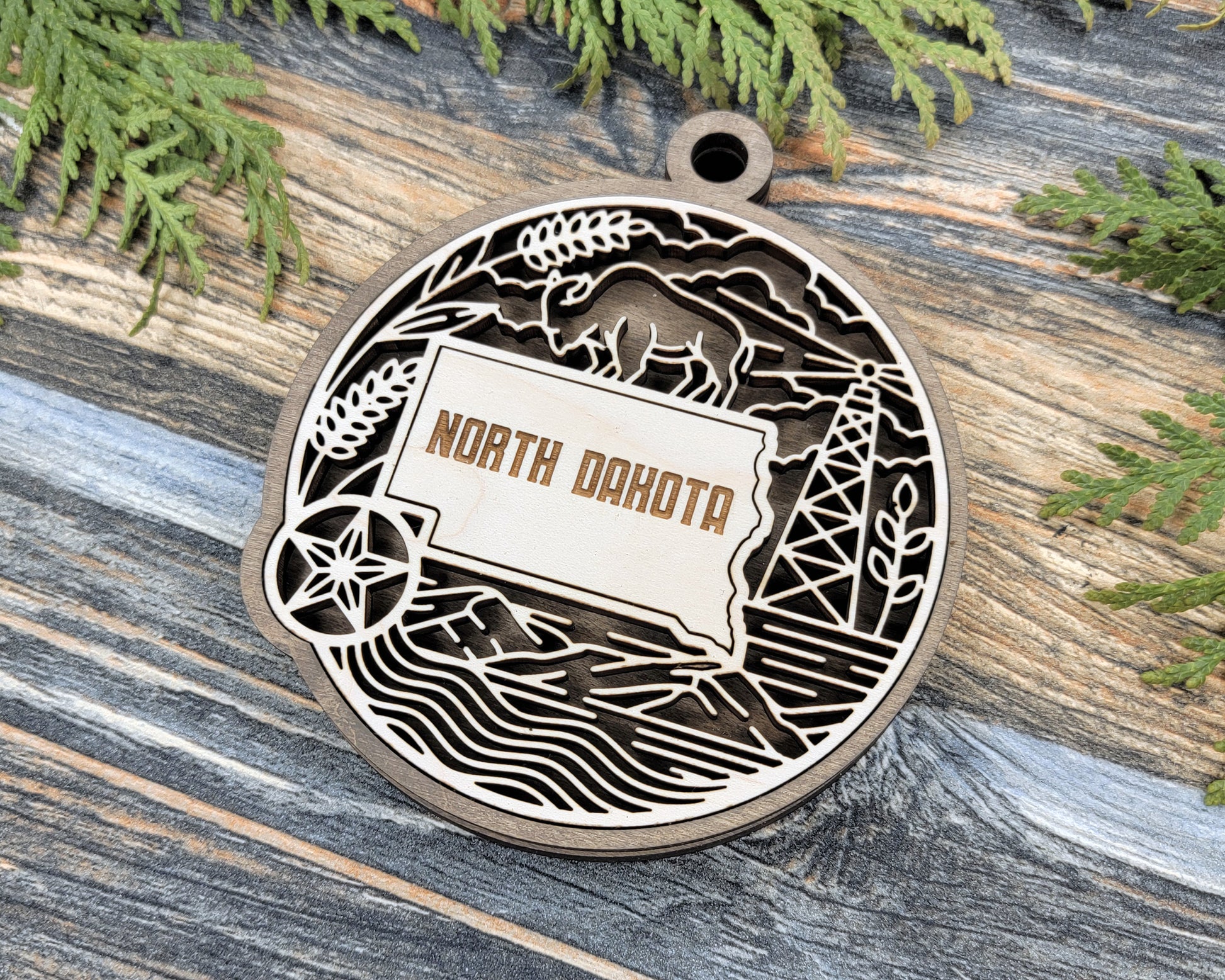 Celebrate North Dakota's rich heritage with this beautifully crafted North Dakota State Heritage Ornament. Perfect for adding a meaningful touch to your holiday decor or as a thoughtful gift, it honors the state’s unique history and culture. Its detailed design makes it a cherished keepsake for residents and admirers alike.