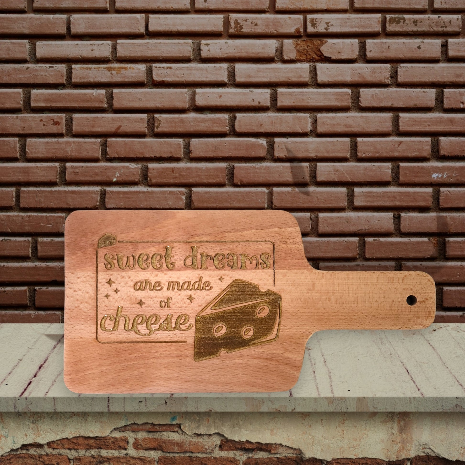 Paddle Handle Small Serving Board - "Sweet Dreams are Made of Cheese"