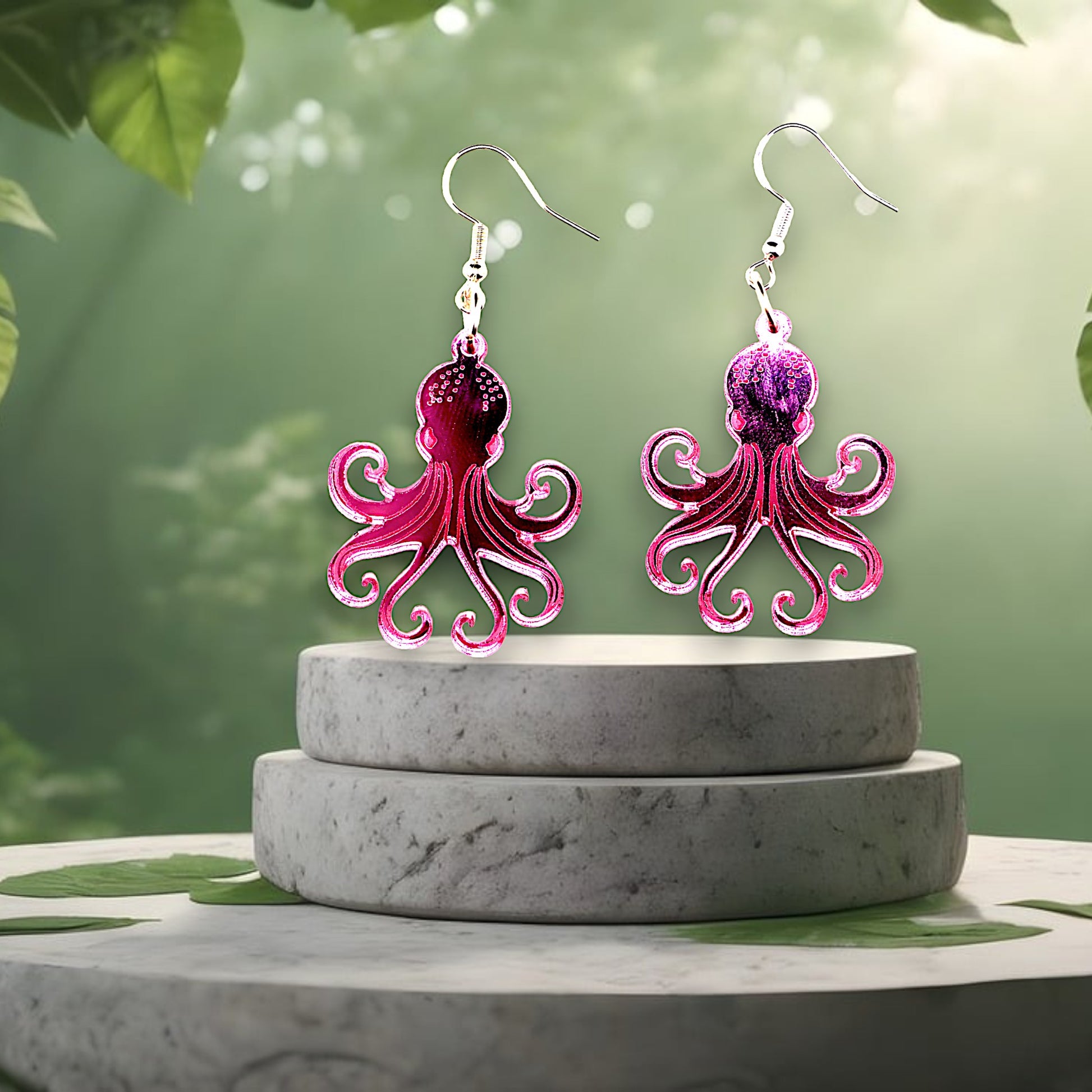 Elevate your style with these Purple Mirror Octopus Dangle Earrings. The eye-catching design features vibrant purple mirrors and detailed octopus shapes that add a touch of playfulness to any outfit. Enjoy the unique benefits of a fun and fashionable accessory that will turn heads and make you stand out.