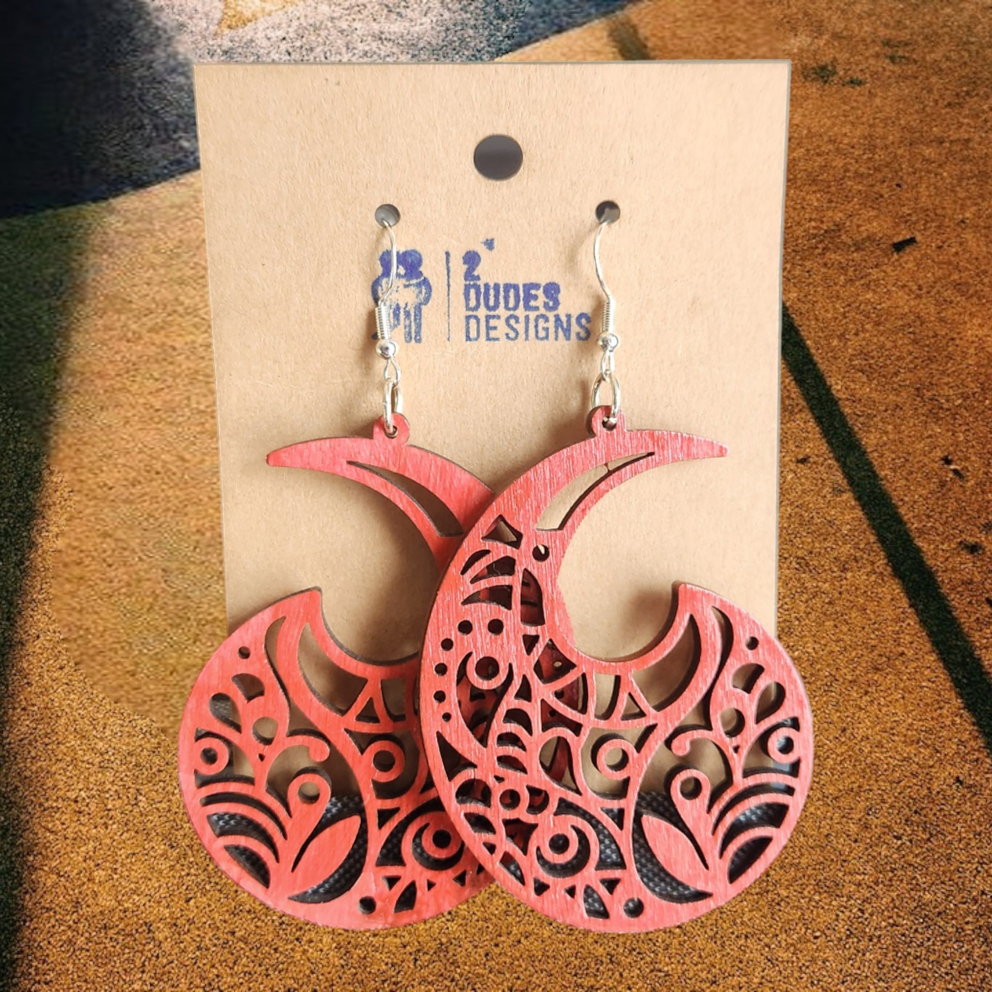 Add a touch of celestial charm to your outfit with these beautiful Red Celestial Dangle Earrings. The vibrant red color and delicate design are sure to catch the eye and add a pop of color to any look. Made with high-quality materials, these earrings are both stylish and durable. Elevate your style and confidence with the Red Celestial Dangle Earrings.