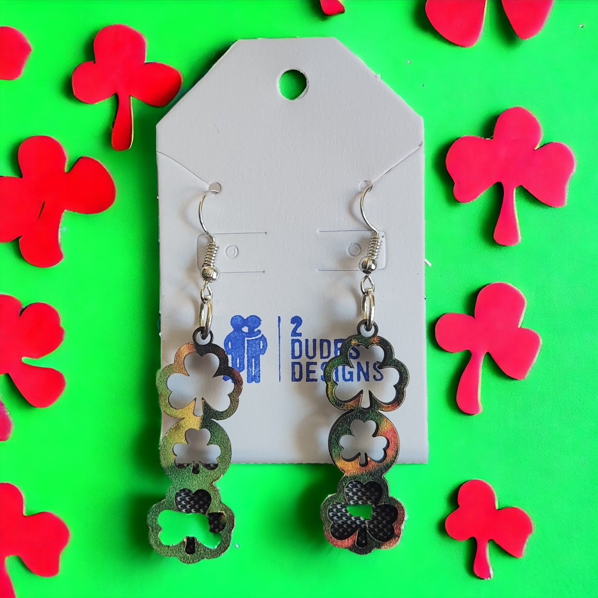 Add a little luck to your outfit with our St. Patrick's Triple Shamrock Dangle Earrings. Made with high quality materials, these earrings feature three delicate shamrocks that will bring a touch of charm to any look. Perfect for celebrating St. Patrick's Day or adding a festive touch to your everyday style.