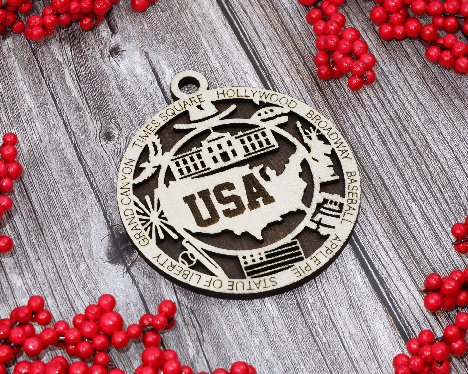 Celebrate American spirit with this spirited USA ornament that brings patriotic joy to your holiday collection. Playfully crafted with authentic details, it honors the diverse character and bold energy of the nation. Perfect for proud Americans, travelers, or anyone who loves adding stars-and-stripes flair to their festive décor—this ornament radiates warmth, pride, and festive cheer.