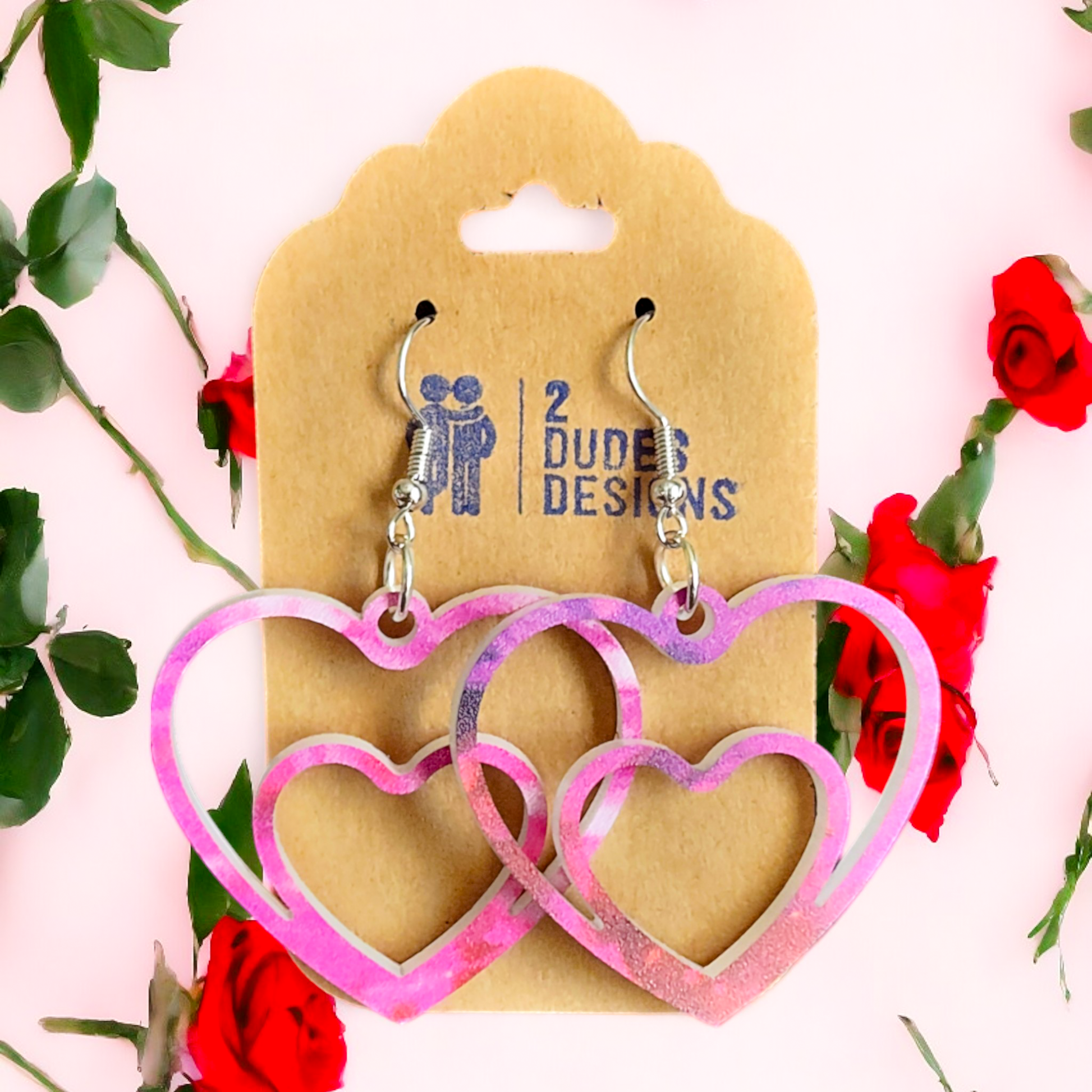 "Add a pop of vibrant color to your Valentine's Day look with these playful dangle earrings. Made from lightweight acrylic, these earrings provide comfort and style, perfect for that special date night. The vibrant pink and purple hues will make you stand out and catch your love's eye. Show some love with our Valentines Dangle Earrings!"